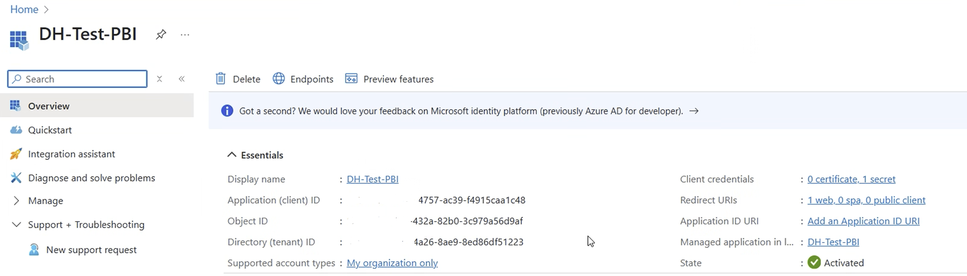 5. Now go to Digital Hive and setup the Connector. The App ID and Tenant ID can be copied from the below screenshot. You will also need to create a Secret ID by clicking on Client credentials on the left hand side.
