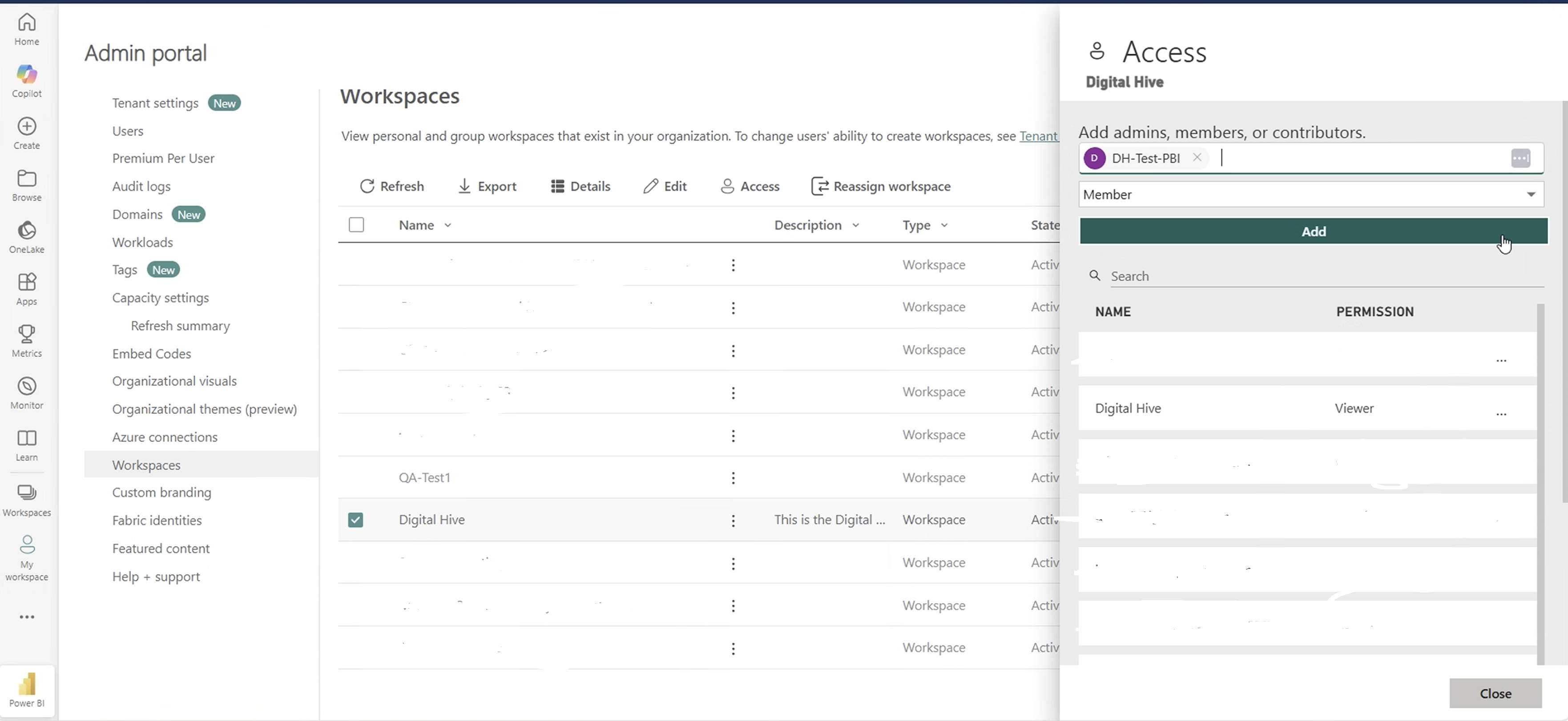 4. Go to Admin portal -> Workspaces