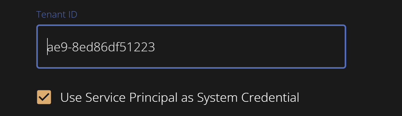 Under Advanced settings, make sure you check the box Use Service Principal as System Credential in Digital Hive.