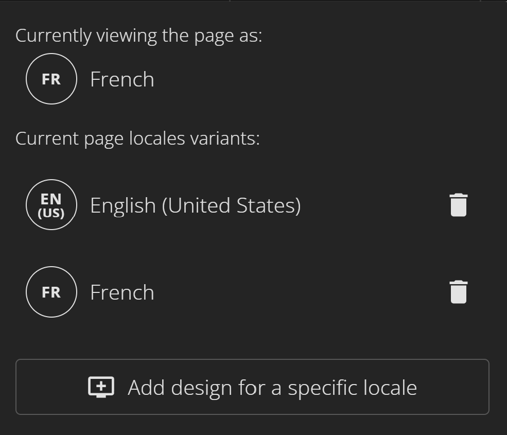 - You can also delete any locale by clicking the Delete icon next to the locale under Current page locales variants.