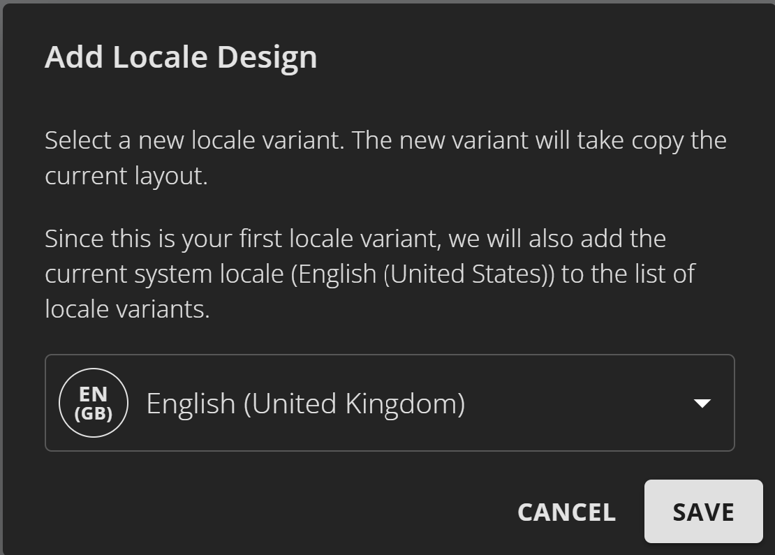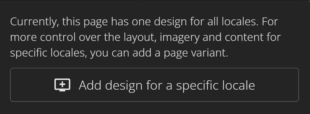 - You will see a popup that says this page has one design for all locales and you can add design for a specific locale.
